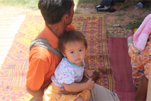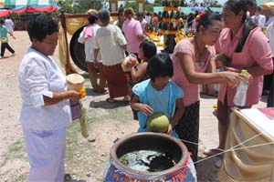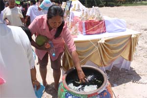 Blessing holy water to visitors.