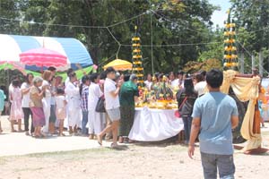 Visitors take worship/offering items Foods/Flowers Holy items Holy water back home for good fortune..