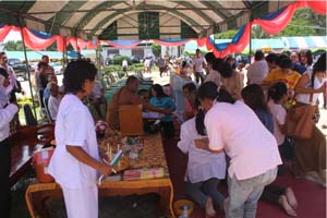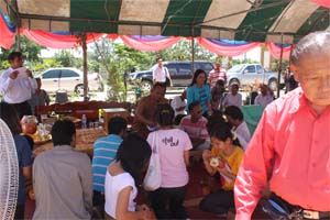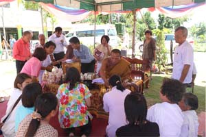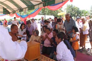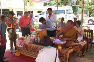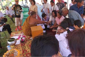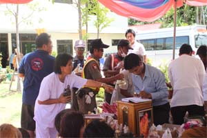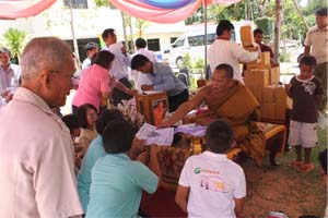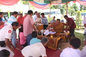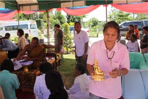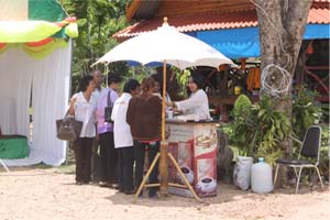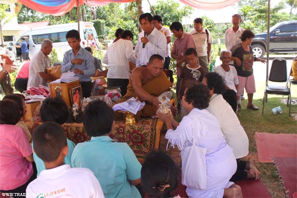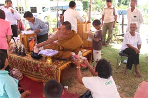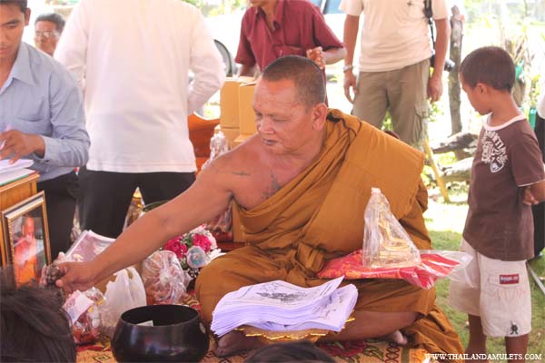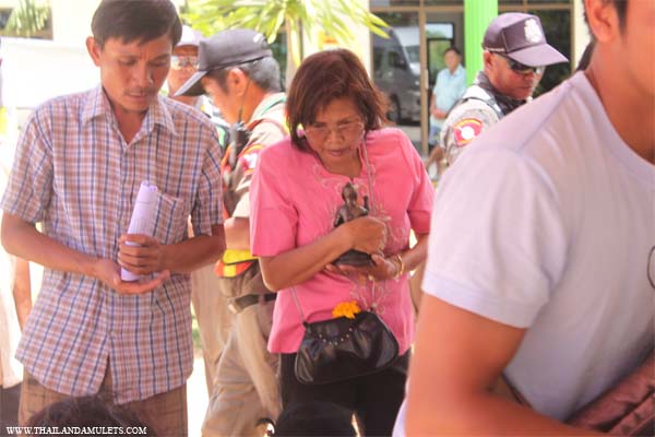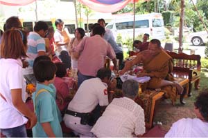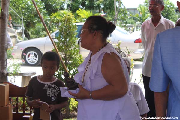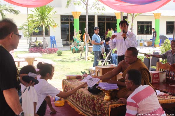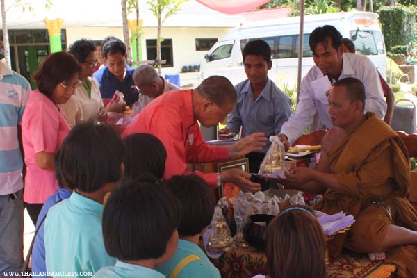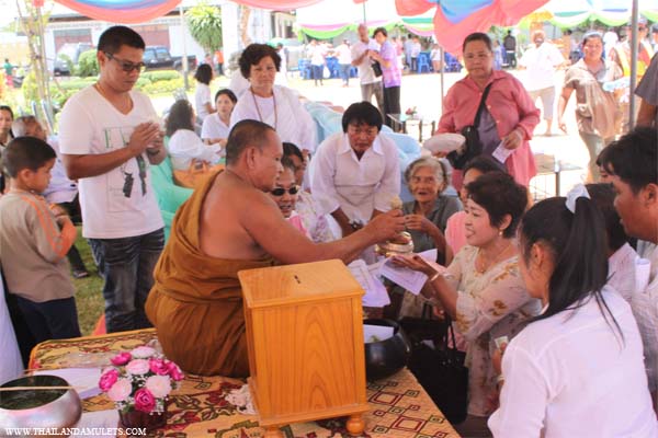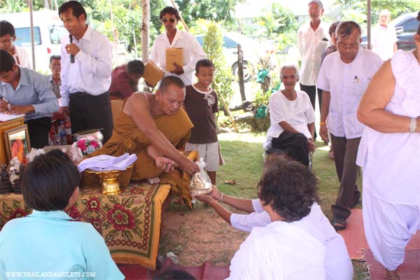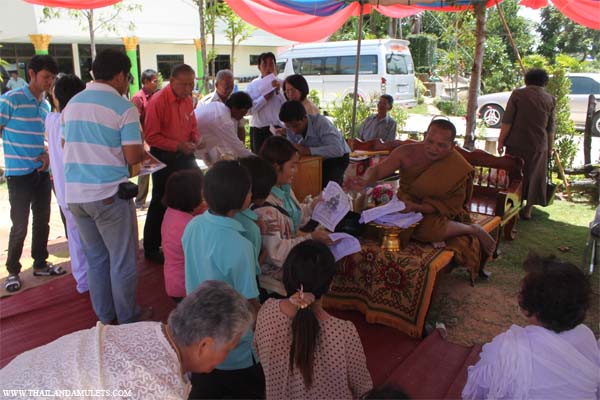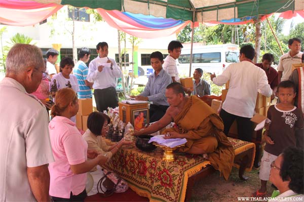Luangpor Teang given payant blessing mantras. Many people come receive good consecrated holy statues/amulets from a guru monk.