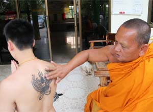 Luangpor Pong of WatSamarnmit temple, bath holy waters blessing.