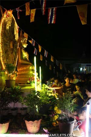 (Left) Sign certificate for donator from oversea. (Right) bless/chanted amulets and statues, Lp.Tae's Gumarnthong and PhraSangkajai winter monk robe.