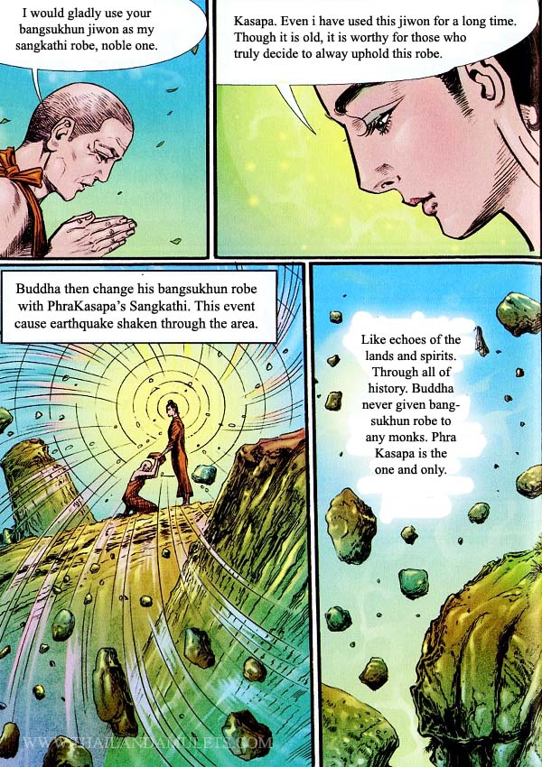 Bangsukhun robe(jiwon) used by monks to cover corpses. Lay at front of corpses at the funeral. Dirts with dusts. Not the robes people offer. At present day, Bangsukhun robe often use in white colour during ceremony. Blessing people's fortune with dead/rebirth ceremony and place over zai-zin(white robe) during the ceremony.