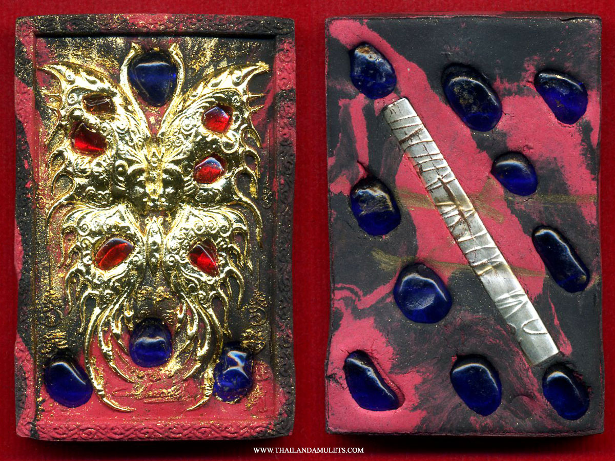 Made of sacred holy materials with fragrance. Plated with gold. Given direct by the monk, special wrote with mantra. King of Butterfly Shiva blessing amulet by Kruba Krissana Intawanno, guru monk of Thailand.