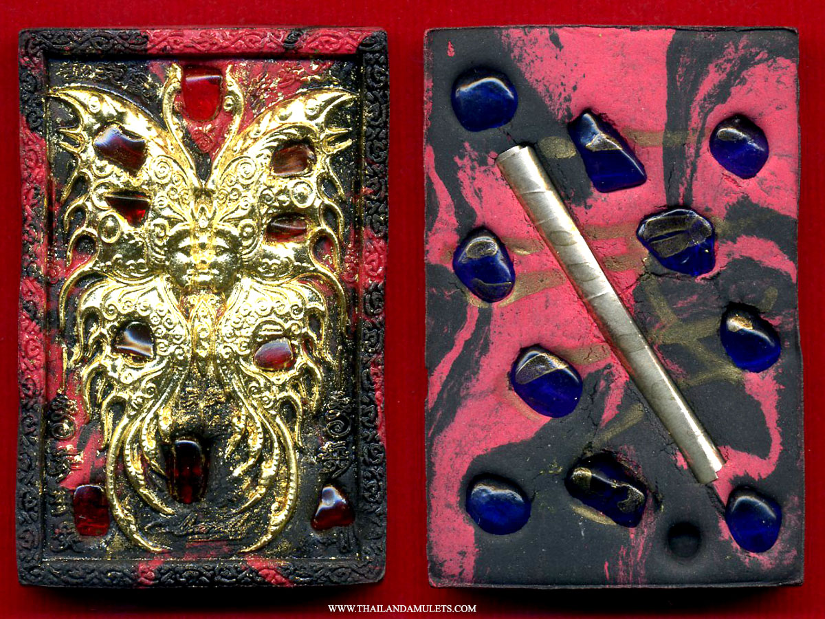 Made of sacred holy materials with fragrance. Plated with gold. Given direct by the monk, special wrote with mantra. King of Butterfly Shiva blessing amulet by Kruba Krissana Intawanno, guru monk of Thailand.