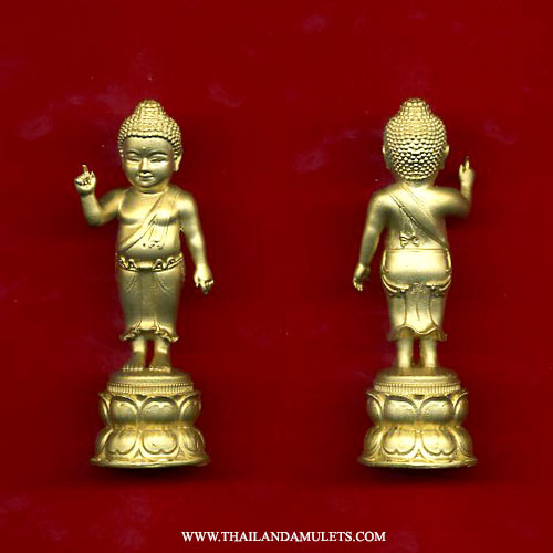 Baby Buddha statue is known as the first golden boy "Gumanthong". The graceful and purity. To welcome gentleness, harmony, loving kindness into life's fortune. The sources of intregrity. People worship and place the Buddha statue among the gumarnthong statues, holy statues, at center infront of all.
