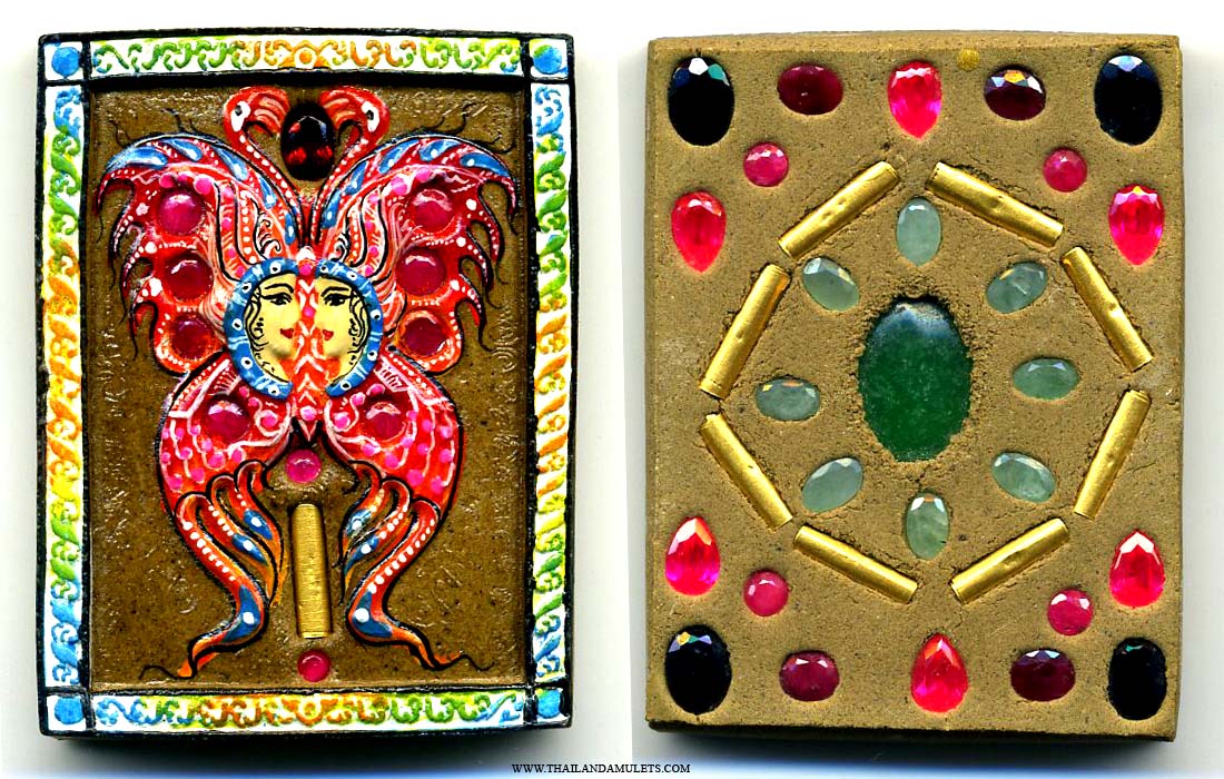 Description Original type King of Butterfly with 9 Gold trakruts attached. Special batch made of the year B.E.2552 by Kruba Krissana, made only 2 only. Great designed PhraShiva King of Butterfly amulet attached with high quality gems. Gold takrut chanted and crafted mantra then attached by Kruba Krissana. Powerful blessing fortune and strong protection.