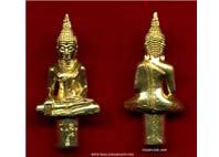 Phra YodThong is a buddha amulet with "Pang Chana-Marn" posture, placed on top of the battle flag during warring state. To conquer victory over enemy, evils/darkness, obstacles and dangers. Consecrated with Pa-Hung mantras, which is the power of Buddha to destroy evils and obstacles.