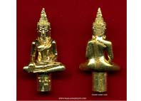 Phra YodThong is a buddha amulet with "Pang Chana-Marn" posture, placed on top of the battle flag during warring state. To conquer victory over enemy, evils/darkness, obstacles and dangers. Consecrated with Pa-Hung mantras, which is the power of Buddha to destroy evils and obstacles.