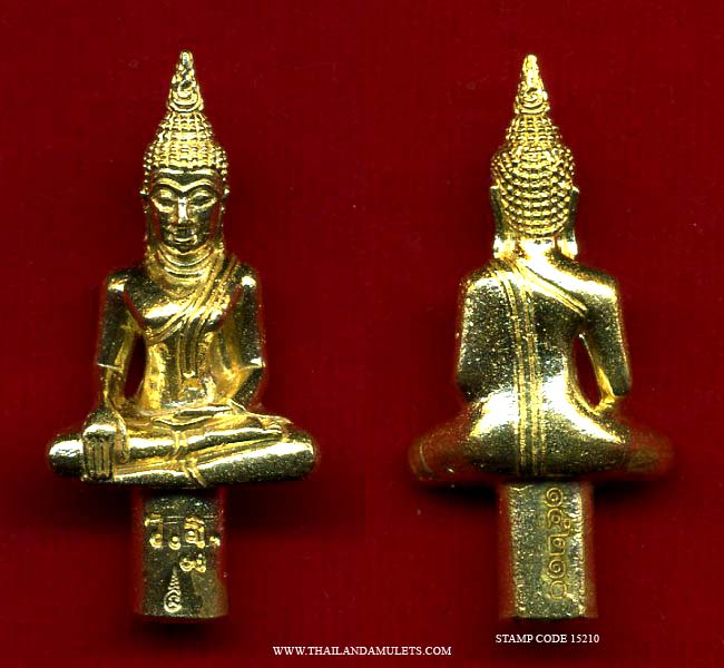 Phra YodThong is a buddha amulet with "Pang Chana-Marn" posture, placed on top of the battle flag during warring state. To conquer victory over enemy, evils/darkness, obstacles and dangers. Consecrated with Pa-Hung mantras, which is the power of Buddha to destroy evils and obstacles.