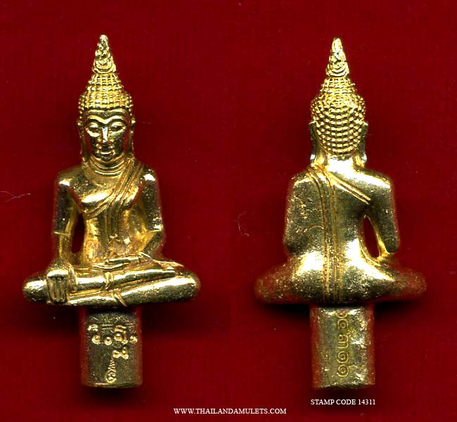 Phra YodThong is a buddha amulet with "Pang Chana-Marn" posture, placed on top of the battle flag during warring state. To conquer victory over enemy, evils/darkness, obstacles and dangers. Consecrated with Pa-Hung mantras, which is the power of Buddha to destroy evils and obstacles.