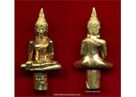 Phra YodThong is a buddha amulet with "Pang Chana-Marn" posture, placed on top of the battle flag during warring state. To conquer victory over enemy, evils/darkness, obstacles and dangers. Consecrated with Pa-Hung mantras, which is the power of Buddha to destroy evils and obstacles.