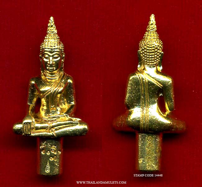 Phra YodThong is a buddha amulet with "Pang Chana-Marn" posture, placed on top of the battle flag during warring state. To conquer victory over enemy, evils/darkness, obstacles and dangers. Consecrated with Pa-Hung mantras, which is the power of Buddha to destroy evils and obstacles.