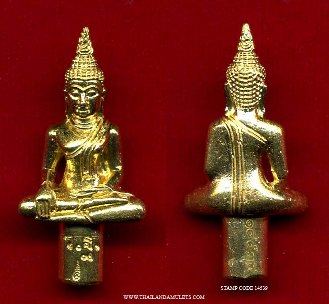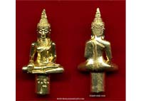 Phra YodThong is a buddha amulet with "Pang Chana-Marn" posture, placed on top of the battle flag during warring state. To conquer victory over enemy, evils/darkness, obstacles and dangers. Consecrated with Pa-Hung mantras, which is the power of Buddha to destroy evils and obstacles.