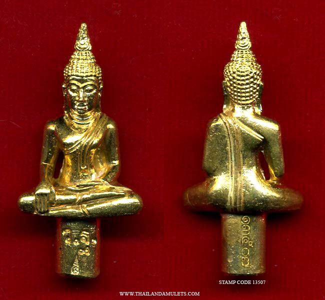 Phra YodThong is a buddha amulet with "Pang Chana-Marn" posture, placed on top of the battle flag during warring state. To conquer victory over enemy, evils/darkness, obstacles and dangers. Consecrated with Pa-Hung mantras, which is the power of Buddha to destroy evils and obstacles.