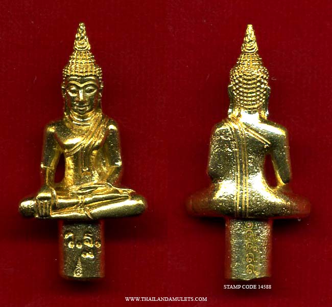 Phra YodThong is a buddha amulet with "Pang Chana-Marn" posture, placed on top of the battle flag during warring state. To conquer victory over enemy, evils/darkness, obstacles and dangers. Consecrated with Pa-Hung mantras, which is the power of Buddha to destroy evils and obstacles.