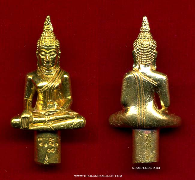Phra YodThong is a buddha amulet with "Pang Chana-Marn" posture, placed on top of the battle flag during warring state. To conquer victory over enemy, evils/darkness, obstacles and dangers. Consecrated with Pa-Hung mantras, which is the power of Buddha to destroy evils and obstacles.