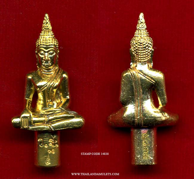 Phra YodThong is a buddha amulet with "Pang Chana-Marn" posture, placed on top of the battle flag during warring state. To conquer victory over enemy, evils/darkness, obstacles and dangers. Consecrated with Pa-Hung mantras, which is the power of Buddha to destroy evils and obstacles.