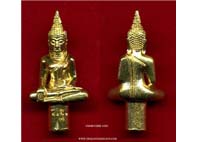 Phra YodThong is a buddha amulet with "Pang Chana-Marn" posture, placed on top of the battle flag during warring state. To conquer victory over enemy, evils/darkness, obstacles and dangers. Consecrated with Pa-Hung mantras, which is the power of Buddha to destroy evils and obstacles.