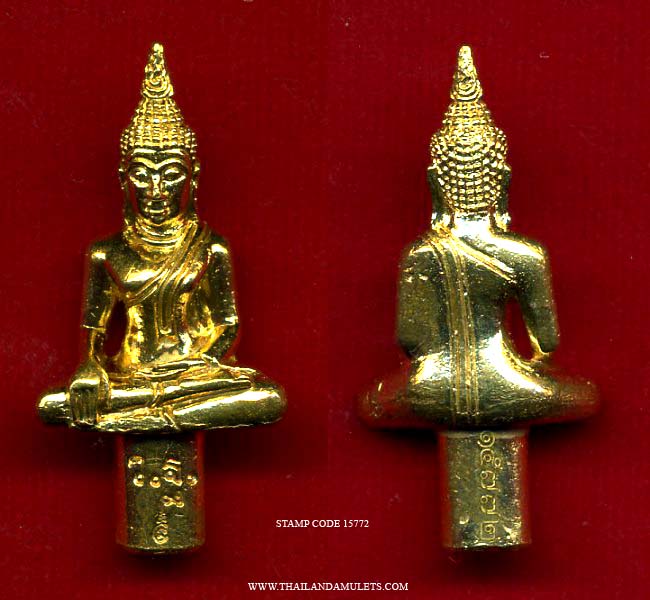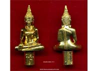 Phra YodThong is a buddha amulet with "Pang Chana-Marn" posture, placed on top of the battle flag during warring state. To conquer victory over enemy, evils/darkness, obstacles and dangers. Consecrated with Pa-Hung mantras, which is the power of Buddha to destroy evils and obstacles.
