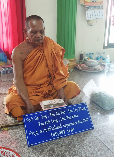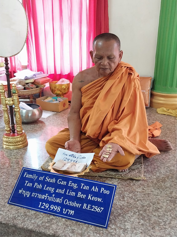 October B.E.2567(2024). Donation 129,998 thb. from oversea to build Ubosod(Ordination hall).