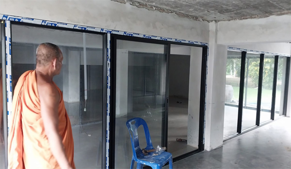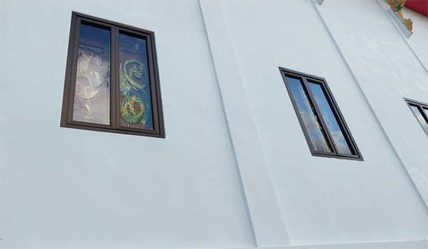 B.E.2567 Working on outer part of Ubosod. Basement level, rooms and ceiling. Main door and window's frame. Aaw-Khan (Waist bowl) base with layers covered around Ubosod.