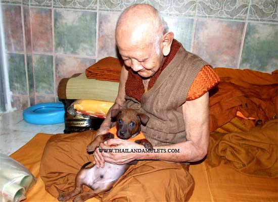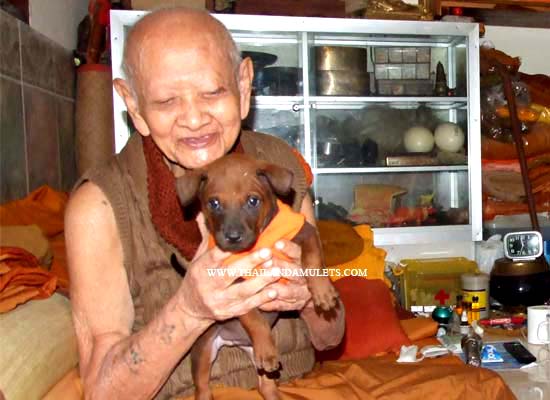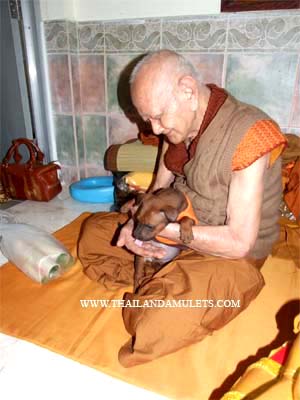 Luangpu Hong holding the thairidgeback, a good breed from Thailand.