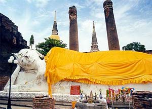 The Great Chedi Chaya Mongkhol was built by the command of King Naresuan the Great, to commemorate his decisive victory over the Burmese invasion in A.D. 1592. The event was climaxed in the momentous elephant combat between the King and the Burmese crown prince Maha Uparaja, in the province of Suparnburi the renown of King Naresuan was such that there was no more outside invasion for the following two hundred years.