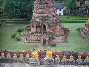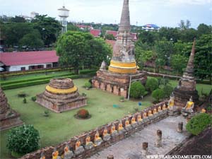 Phra Rachathibodi then appointed the director of this sect as the right-sided patriarch named "Phra Wanratana" while "Phra Putthakosajarn" held the position of the left-sided patriarch. Since the patriarch stayed here, this monastery was named "Wat Chao Phayatai". The ubosot of this monastery was the place where King Tianracha had prayed for the throne before he could beat Khun Worawongsathiraj, another candidate for the throne. In 2135 B.E. in the reign of King Naresuan the Great, Phra Maha Uparacha of Burma marched his army to Ayuthaya in order to take control over the Thai Kingdom. King Naresuan then marched his army to combat the invader. They met at Nong Sarai, Suparn Buri district. King Naresuan had a fight on elephant back with Phra Maha Uparacha. King Naresuan was able to kill his rival but he could not destroy the enemies army because his soldiers were further behind. King Naresuan was full of rage when he came back to Ayuthaya and wanted the commanders to be executed because they were unable to follow him. However, Phra Wanratana of Wat Pakaew asked him for the death penalty and suggested him to build a Chedi to celebrate the victory instead. King Naresuan the Great then decided to construct a large Chedi in this monastery named Phra Chedi Chaimongkhon. This monastery became "Wat Yai Chaimongkhon" later on.