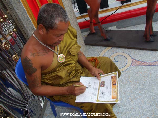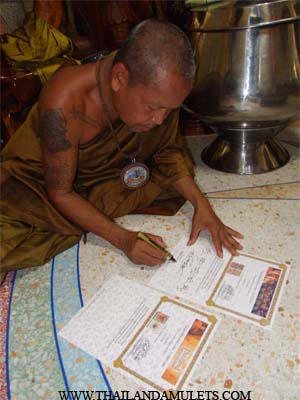 Kruba Krissana's special bless/chant amulets, sign certificate and his blessing mantra on the amulets. The holy items from him are powerful consecrated.