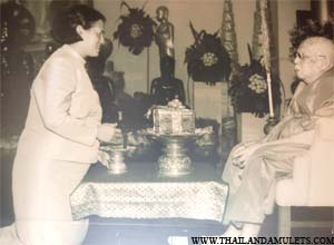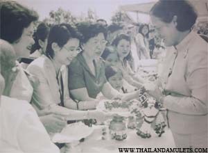 Somdet Phra Nang Chao Sirikit Phra Borommarachininat. Her majesty the Queen Regent Sirikit visited Luangpu Supar Guntasiro offering donation and conduct good karma.