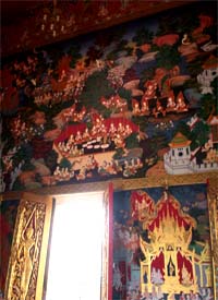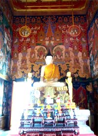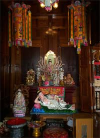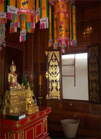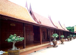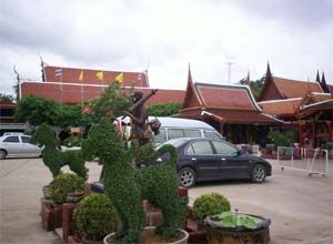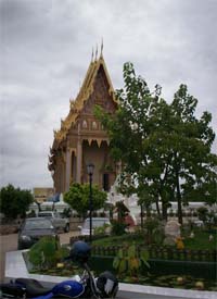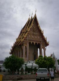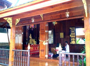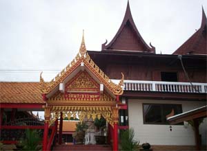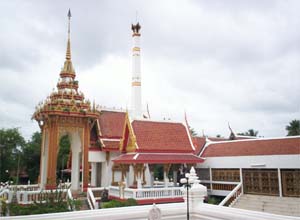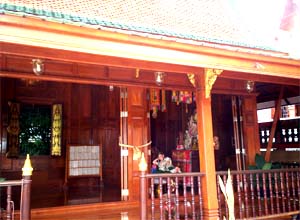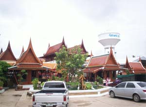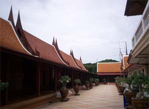 Beautiful landscape and thai house ayuttaya era style and Wat Phrakao the white buddha temple of Luangpu Tim.