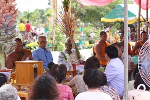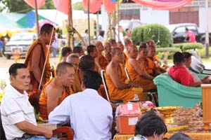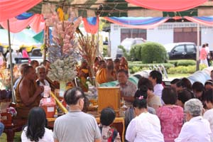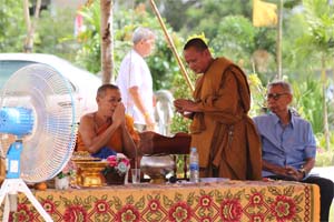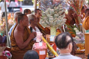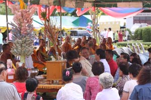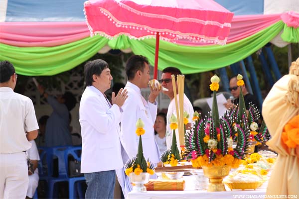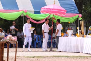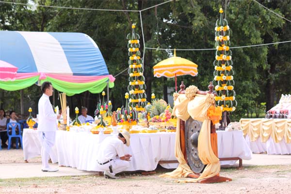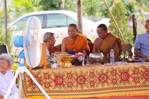 Pram(Brahmin) invited to lead blessing ceremony, place foundation stone, lead chant mantras worship Buddha and Gods/Deva.