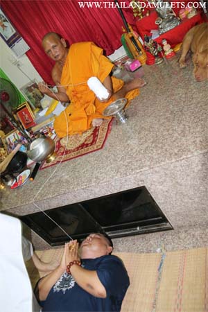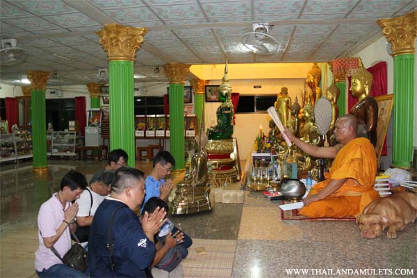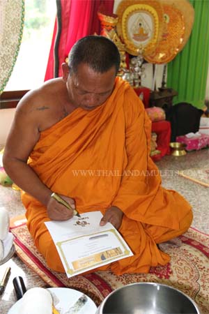 (Left) Sign certificate for donator from oversea. (Right) bless/chanted amulets and statues, Lp.Tae's Gumarnthong and PhraSangkajai winter monk robe.