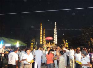 Once brahmin finish chanting mantras, everyone pray at the worship table.