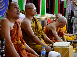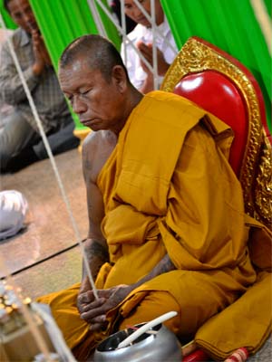 While senior monks chanting long mantras, guru monk abbots of each temples sit focus meditation on each corner, bless/chanted powerful holy items.