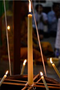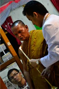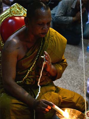 Luangpor Teang light tian-chai, a victory candle, start Buddhapisek ceremony.