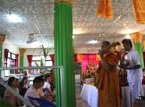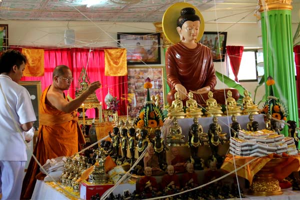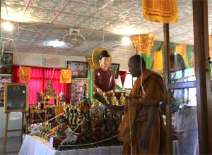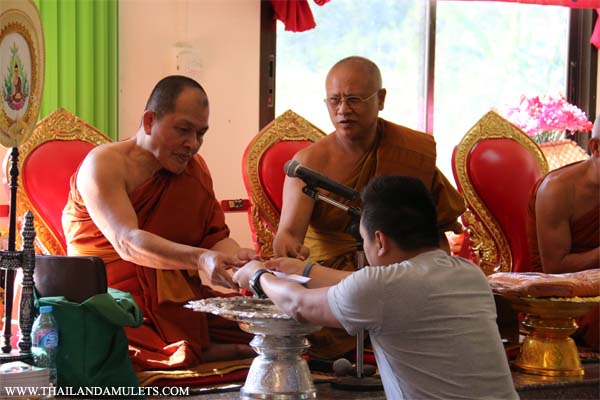 Offer amulets "PhraNavagothi" as gift to the monk.