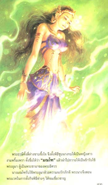 4 great hermits feel thankful for what a female frog did. They decide to bless her with magical power into a beautiful woman call "MonToh", and offer her to PhamaeUma(Parvati) wife of Shiva in service. MonToh is a loyal servant, PhramaeUma had teach her many spells to use in ceremonies until she mastered it all.