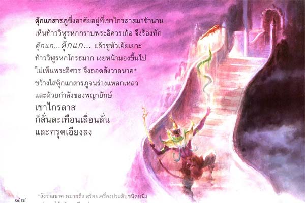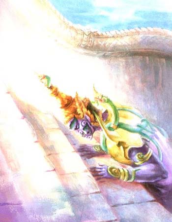 At the time, there's one giant rule an ocean world call "Tao Virulehok" fly to pay respect to Shiva at mount Krailas. A giant alway admire and respect Shiva, for that every stair's step all the way, he would bow once. But at this time, Shiva is not by that place.