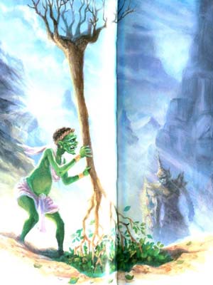 On the way back to Lhonggar city, Tossagun met an old giant try to plant a tree by planting it's root upward. Tossagun then said "you doing stupid thing old woman."