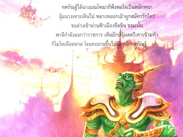 Tossagun can't fight with his full strength while carry a goddess, worry about his bride. The longer time it's take, more of his power had been consume by great monkey Pali, as blessing of Shiva. Pali success in taken Montoh an angel for himself.