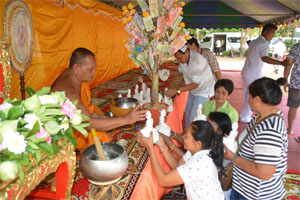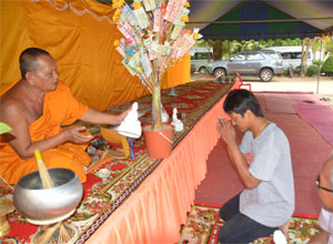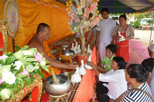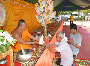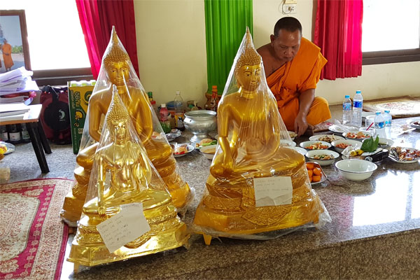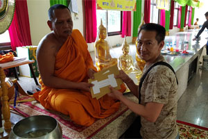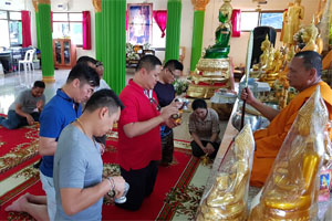 Donate Buddha statues and donations from HongKong's police department to build "Boath" Ordation hall at temple.