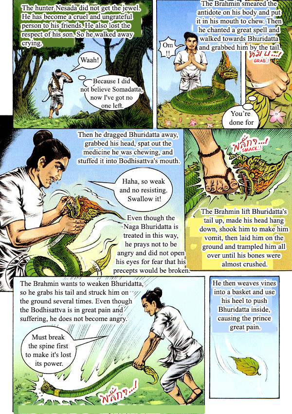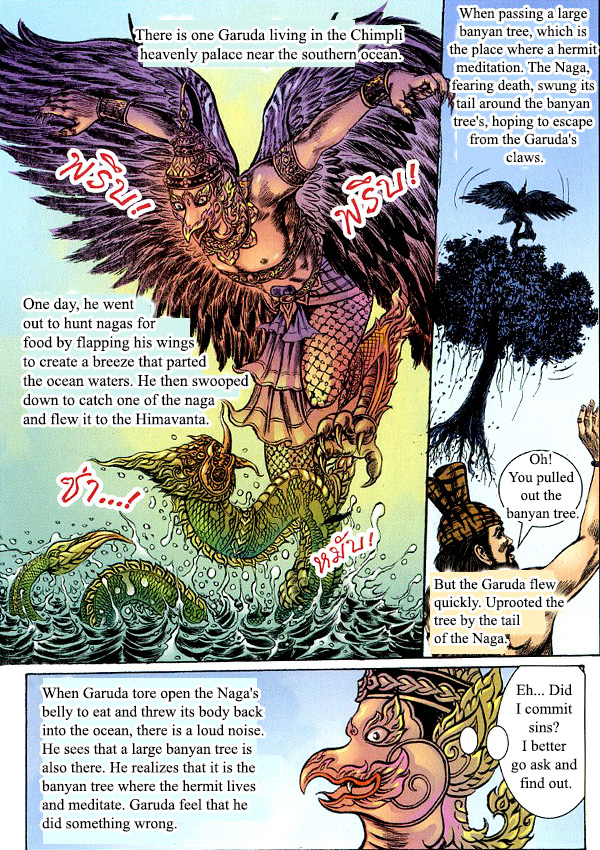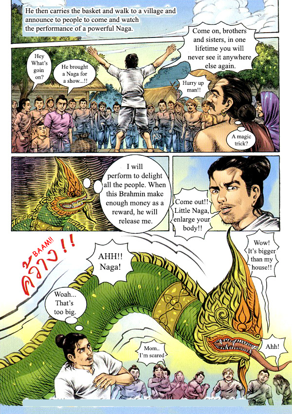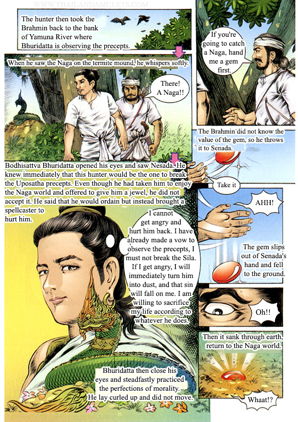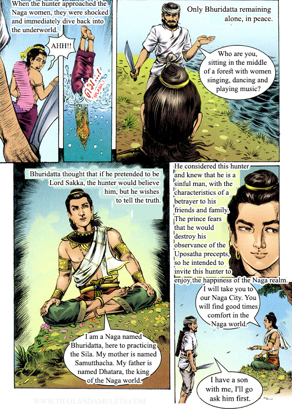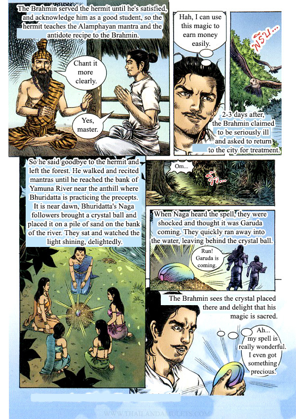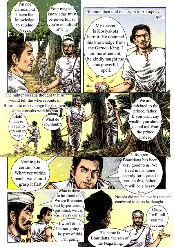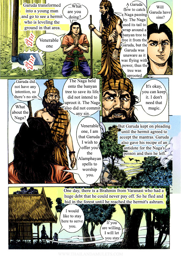 The Alamphayan mantra comes from the story of Bhuridatta Jataka. It is a mantra used to hypnotize the Naga. When the mantra is chanted, the Naga will be so scared that they will run away because they think it is a Garuda or that its powers have been lost.