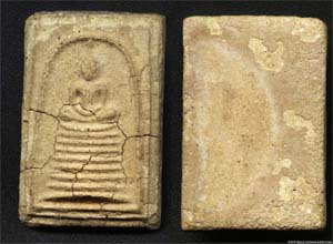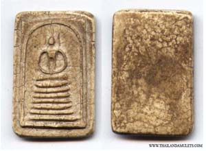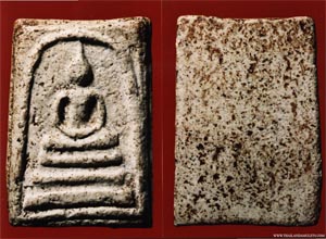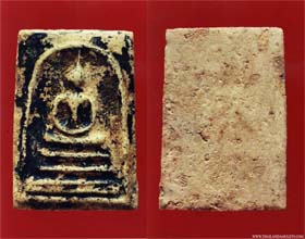 See the surface? that's the very first batch said like a test of mix ingredients. Later on ( Don't know what B.E. ) Luang Vijarn Jearanai ( Gold smith of King Palace ) have visited Somdej Toh and see the mold which create amulets. He do not satisfy with it's art, and said that he will create a new mold for Somdej Toh's amulets. Now! This is start of all great Phra Somdej WatRakhang amulets, an old time people called "Pim Luang VijarnJearanai". But in present day, we called Wat Rakhang which have 5 Pim ( Type ). Also Luang Vijarn Jearanai give an advice to Somdej Toh about ingredient to mix with "Tunkew Oil" which fix the problem of the shatter surface.