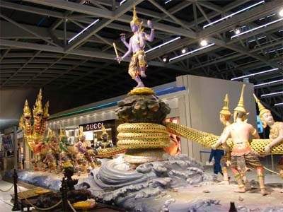 In Thai legend, Rarhu appears as the younger brother of two men who are reincarnated as the sun and moon. Unhappy at being overshadowed, Rarhu is constantly striving to dim their brilliance by swalling them; and occasionally he is successful. In Thialand, devotees normally burn black joss sticks and present eight black offerings, including black-feathered chickens and coffee, to appease the dark angel in the run-up to the eclipse.