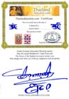 Kruba Krissana's certificate Page 2. All amulets blessed/chanted by Kruba Krissana Intawano. Thailandamulets.com Official Temple Agent.