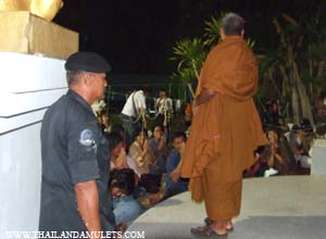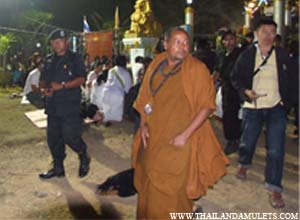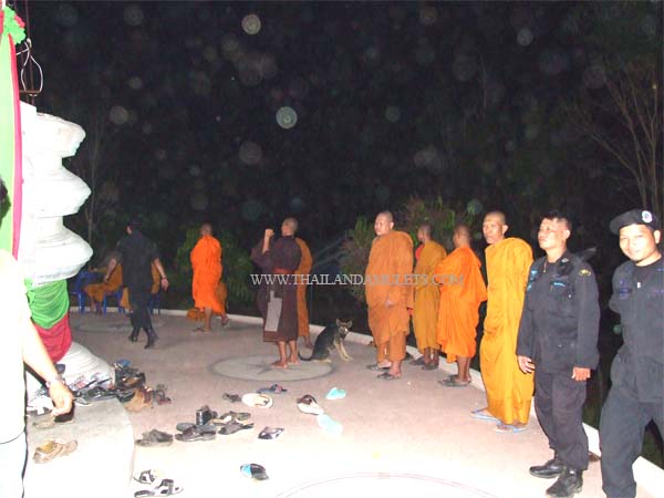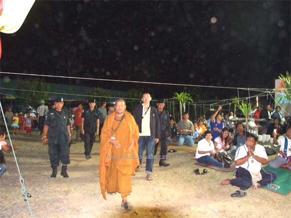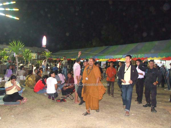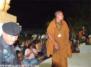 Kruba Krissana walk around the temple to see all devotees and people at the ceremony. Blessing them a good fortune and wished a good luck to people.