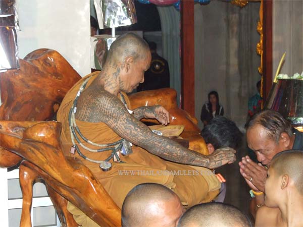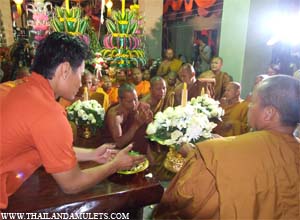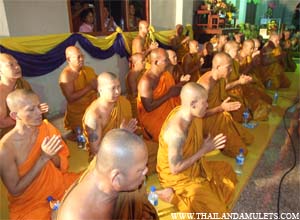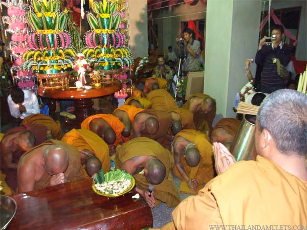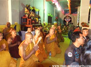 All pray to Kruba Krissana as their master and guru monk, pray to all gods/devas, elders sprits and their teachers. Worship and asked for forgiveness with anything done wrong in the past to their masters. The mantra chant which asked for the monk blessing for their good fortune.