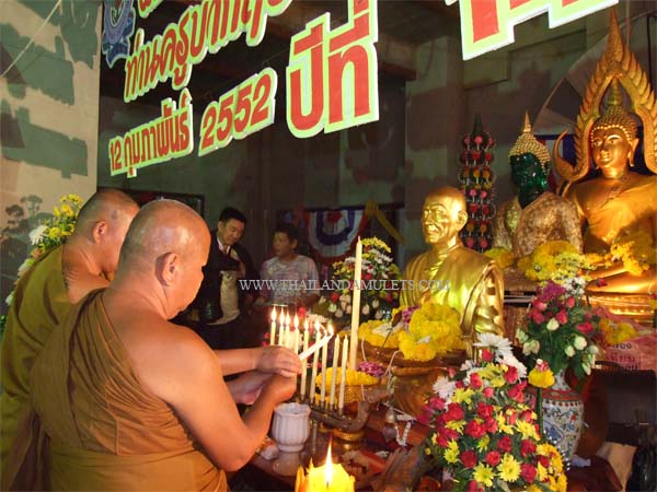 Other senior monks from WatSothonwarararm then light up the worship candles to Buddha and Somdej Toh.