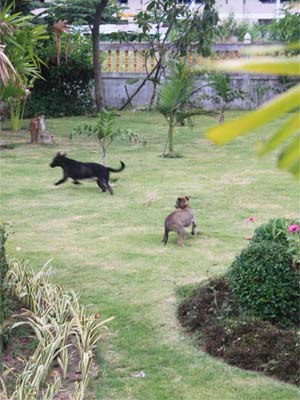 Temple dogs. Very happy and friendly. They're alway full for the rest of their life. Many animals living peaceful here without fear/stress . Those who can't take care of them good, there're alway a place for them.